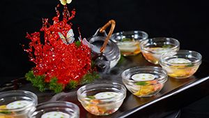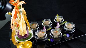 酒鄉(xiāng)錦毛鯉、翻江倒海、荷塘月色、鮑魚紅燒肉......星廚們用自己的技藝和創(chuàng)意匯聚成精美絕倫、寓意豐富的美食藝術(shù)品;一道道做工精細(xì)、別具匠心的佳肴讓人垂涎欲滴,也難倒了現(xiàn)場評委。